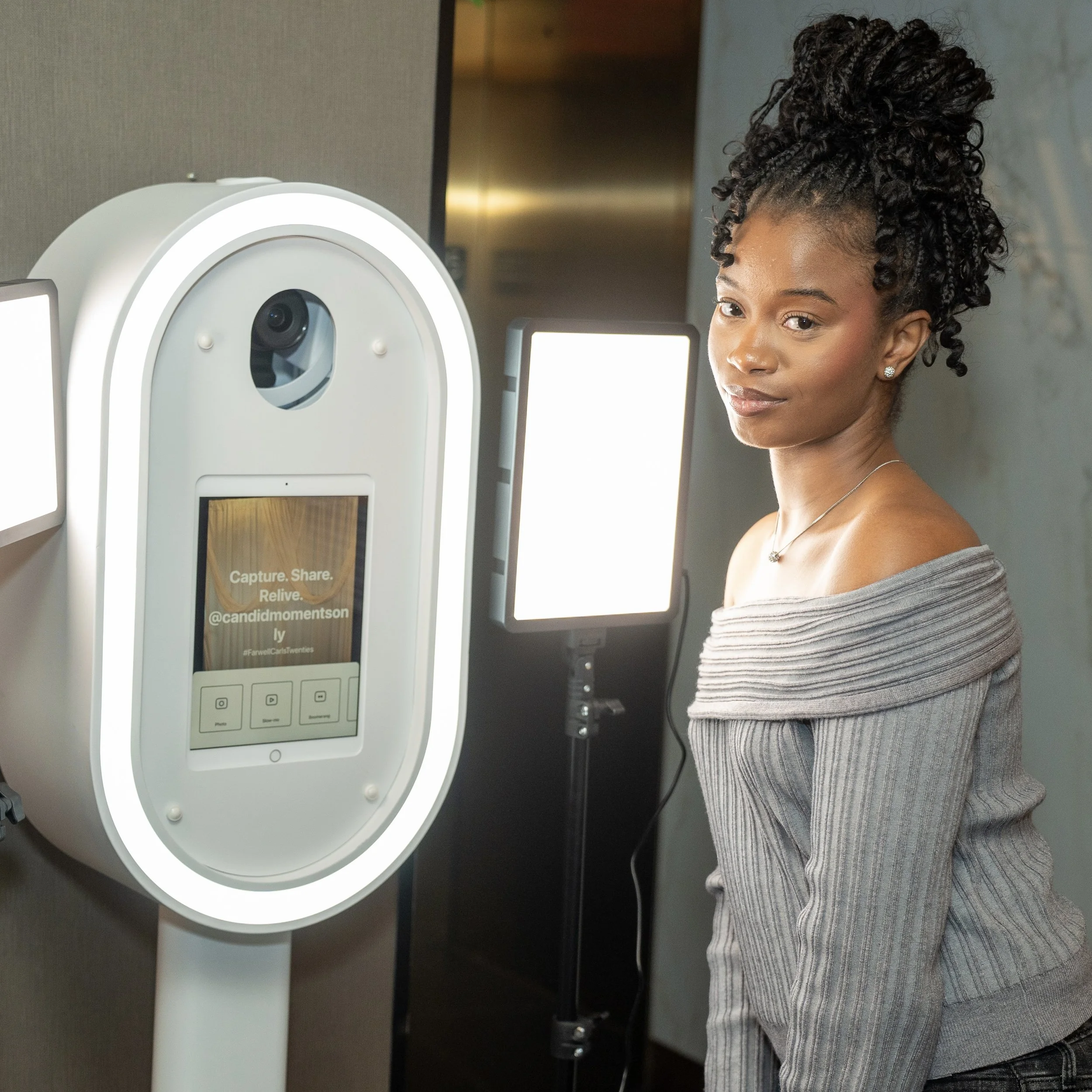 a modern photo booth made to capture genuine smiles and turn every event into a lasting memory